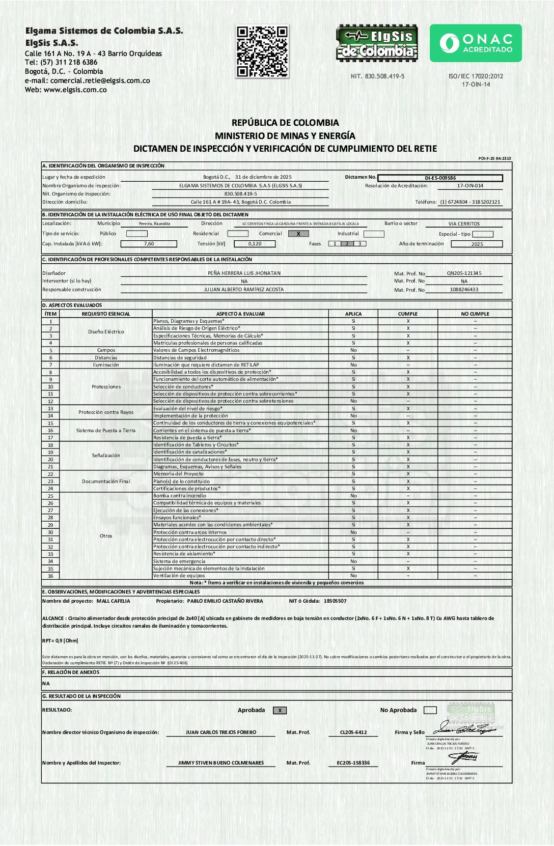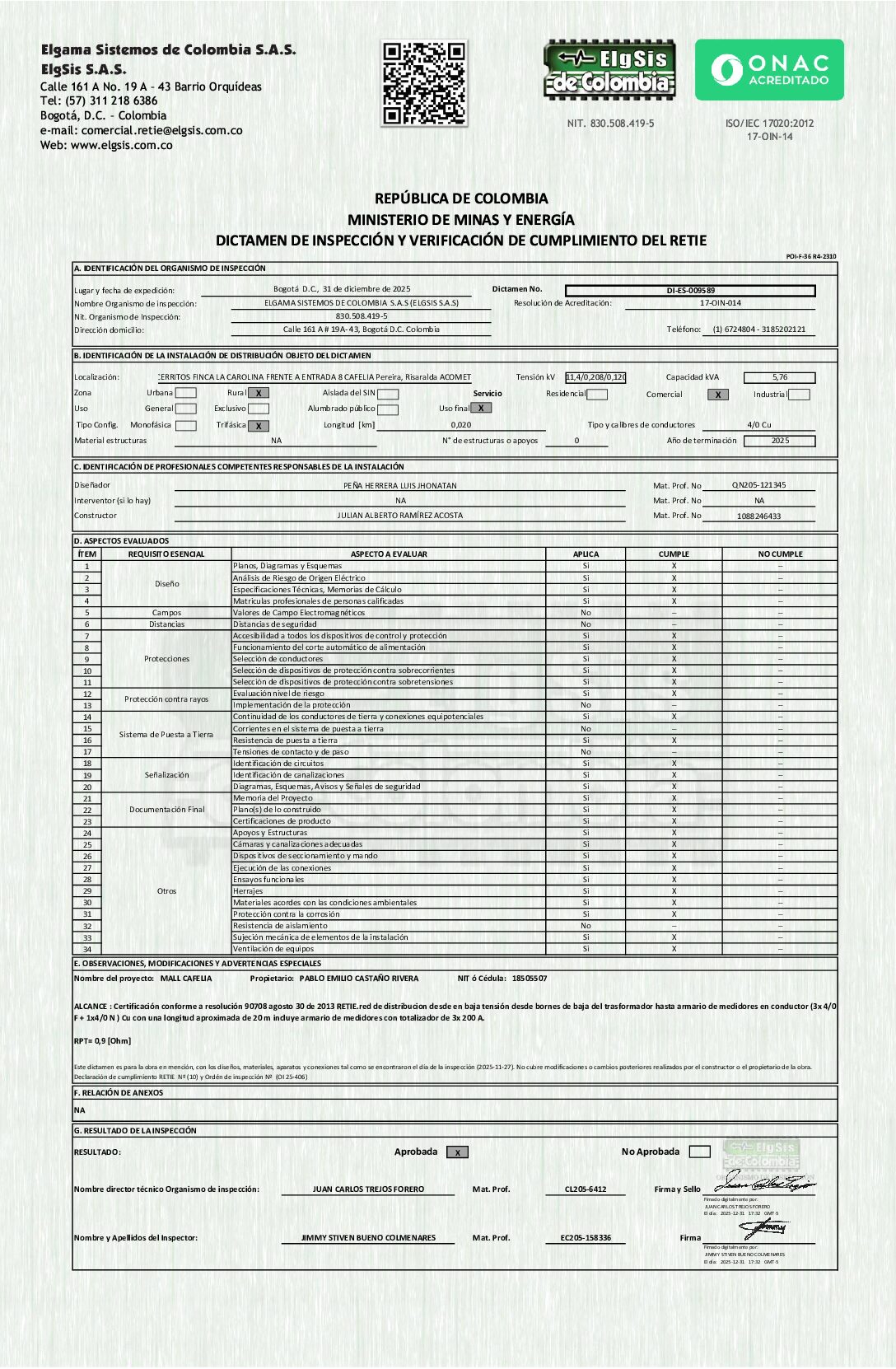 Aquí podrá hacer la verificación de dictámenes de inspección RETIE y descargarlo.